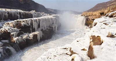近日,受冷空气影响,山西吉县黄河壶口瀑布再现“冰瀑玉壶”景观,晶莹剔透的冰凌与瀑布上空飞架的彩虹相映成趣,美不胜收。
