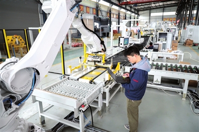 本报讯 通讯员吴涛报道:2月9日,咸宁市咸安经济开发区志研自动化设备湖北有限公司生产车间内,技术人员正在调试汽车轮胎自动安装生产线。