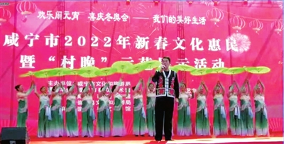 2月14日下午,崇阳县白霓镇回头岭村举办“欢乐闹元宵 喜庆冬奥会——我们的美好生活”2022年新春文化惠民暨“村晚”示范展示活动,大家载歌载舞,欢天喜地庆元宵。
