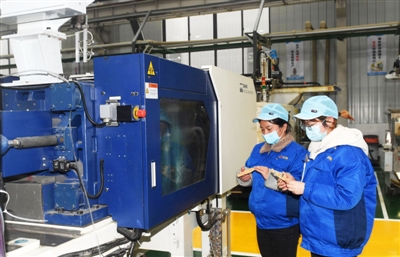 11日,湖北泽瀚实业有限公司员工在精心生产塑胶制品。
