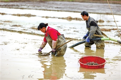 时下正是荸荠收获的季节。连日来,在向阳湖镇宝塔村,种植户们正忙着采收荸荠供应市场,田地里呈现出一派繁忙的丰收景象。