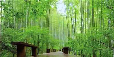 园内,多种名贵竹种生长茂盛,不少竹笋已破土萌发,清新的空气,满眼的苍翠,组成了公园里一道靓丽的绿色风景线。