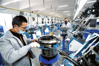 3月18日,位于崇阳经济开发区的湖北铂骏科技有限公司插针车间,工人正在赶订单。