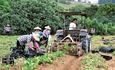 时值春日,在祖国南端的海南文昌市农田里,板栗、地瓜、凤梨迎来丰收,人们忙着采摘、挑拣、装箱,田间地头一片繁忙景象。