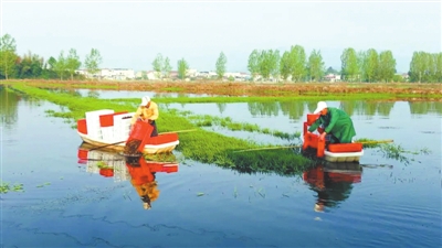 本报讯 全媒体记者甘源报道:四月春光好,正是农忙时。4月14日,一场别开生面的“水上春耕”正在崇阳县沙坪镇码头村如火如荼地进行,在崇阳县顺水种养专业合作社的虾稻田里,九千斤虾苗正在投放,孕育着今年丰收的希望。