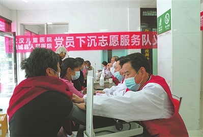 4月20日上午,通城县麦市镇卫生院,武汉儿童医院和通城县人民医院专家下沉开展义诊活动。当天,共接诊群众100多人,发放宣传资料100余份。除了现场义诊,专家们还走进病房为住院患者分析病情。 咸宁日报全媒体记者 刘珊珊 摄