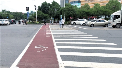 机动车、非机动车各行其道,没有抢行、加塞现象,如流水一般通畅;行人自觉遵守交通规则,红灯亮起时齐刷刷止步于停止线前,“红灯停绿灯行”被严格执行;推着婴儿车的、骑着自行车的,通行于斑马线旁专门设置的自行车通道上,进一步提高了通行效率。