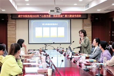 4月22日上午,市税务局阅读兴趣小组开展“心悦书香·我来领读”活动。该单位将阅读活动与年初部署的“五基培养工程”相结合,选取两本书为教材,采取听、讲、练、演、说等形式,让十多位来自基层的税务读者共赏共读共听,使阅读的火花在思想碰撞中被点燃。 樊芳 赵骏 摄(影像咸宁)