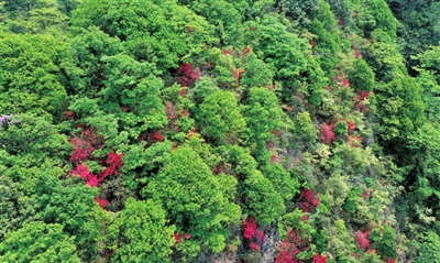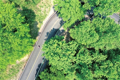 近日,无人机镜头下的崇阳县桂花林场林海茫茫,满目葱茏。