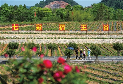 “五一”假期,位于铜钟乡清水村的七彩药王谷,芍药花、蔷薇花、金银花开得正艳,前来打卡的客人一拨接着一拨。