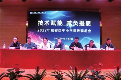 今年5月18日,梓山湖北大邦实验学校再次迎来了一次全面的综合性“大考”,咸安区中小学“技术赋能 减负提质”课堂教学改革现场会在此召开。当天,该校所有课堂全面开放,区教育局局长徐建华、副局长冯成、区教研室、装备站、信息办负责人、全体教研员以及各乡、镇、办教育总支业务员、学校校长、教学副校长、中小学语数教师代表共计260余人现场推门听课、评课、议课,共同见证了该校“三力源·学品智慧课堂”课堂教学改革成果。