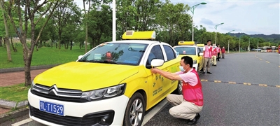 本报讯 记者周萱报道:穿上红马甲、系上黄丝带……昨日,市区近300台爱心护考车已集结完毕,随时准备为高考生提供服务。