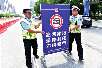高考期间,市交警部门对鄂南高中、东方外国语学校、咸宁高中、青龙山高中等考点路段实行临时交通管制。交通管制期间,一切机动车和非机动车在管制时间内,需严格执行禁鸣规定。