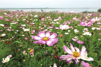 “格桑”是“美好时光”或“幸福”的意思,所以格桑花也叫幸福花。眼下,正是格桑花盛开的季节。向阳湖镇湿地花海地处全省第五大湖泊——西凉湖畔,共1800亩。计划分三期打造,其中一期500亩,目前已种植多种颜色的格桑花。此外,彩虹滑道、农家乐、音乐烤吧正在建设中,闲暇的周末,来走走逛逛,约上三五好友拍拍照,忙里偷个闲,也是不错的体验。 通讯员 吴涛 刘洁 摄