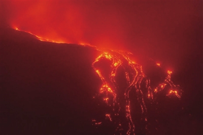 6月1日,意大利西西里岛,埃特纳火山再次喷发,沸腾的岩浆奔流而出。