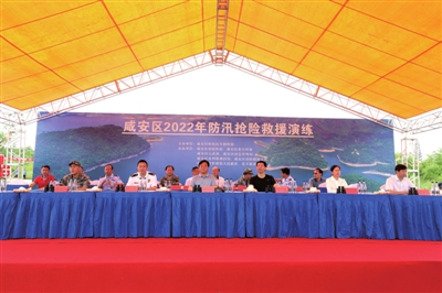 “现在,防汛抗旱应急演练正式开始!”随着防汛抢险应急演练总指挥长一声令下,6月10日上午,由咸安区防汛指挥部主办,区委组织部、区委宣传部、区人武部、区应急管理局、区水利和湖泊局、区消防救援大队、贺胜桥镇政府具体承办的防汛抢险应急演练,在咸安区梓山湖蜜月湾举行。区领导顾兴旺、李军平、马桂莲、陆有山、万龙、杜新国、市应急管理局、市消防救援支队有关领导,各区直单位有关负责同志参加。