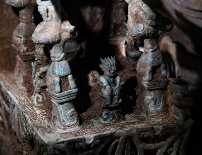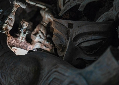 目前三星堆3、4号“祭祀坑”已结束野外发掘,5、6号“祭祀坑”正在开展埋藏文物的室内清理,此次公布的文物主要集中在7、8号“祭祀坑”。其中7号“祭祀坑”发现了被考古学家称为“月光宝盒”的龟背形网格状器,成捆的长条状玉凿、三孔玉璧形器,铜顶璋龙形饰、小件的青铜凤鸟、青铜立人等。8号“祭祀坑”大件青铜器更多,包括金面罩铜头像、顶尊蛇身铜人像、精妙复杂的铜神坛、“机器狗”一样的铜巨型神兽、“裹裙坎肩大背头”的铜立人像、铜猪鼻龙形器、铜戴象牙立人像、铜神殿形器盖等,数件文物都是世界上首次发现。