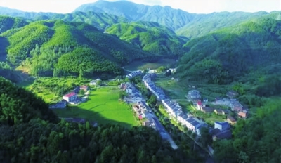 你们看,我们村四周全是大山一片绿。我们以前靠山吃山起家,我们现在乡村振兴还得靠山吃山。“绿水青山,就是金山银山”。践行“两山”理论,就是我们的罗盘和旗帜。