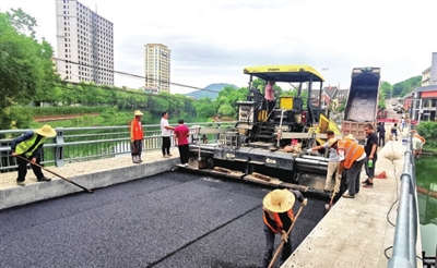 6月18日,城区一号桥,大型机械对桥面进行刷黑,次日恢复通车。
