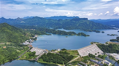 站在青山水库大坝上,清风拂面,碧波荡漾,山美水绿。