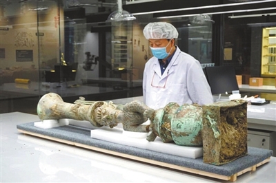 近日,三星堆考古研究团队宣布将8号“祭祀坑”新发现的顶尊蛇身铜人像与1986年2号“祭祀坑”出土的青铜鸟脚人像残部拼对成功,专家将这件文物重新命名为鸟足曲身顶尊神像。在“分离”3000年后终于合体,专家认为这件充满想象力的珍贵文物堪称中国青铜文明的“巅峰之作”。