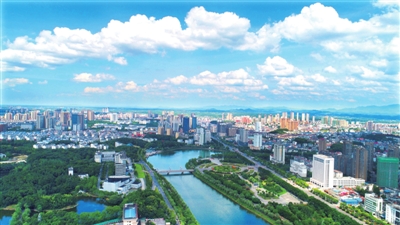 7月11日,无人机拍摄的城区,处处蓝天白云、碧空如洗。近年来,我市以打好“蓝天、碧水、净土”三大保卫战为抓手,推动污染防治攻坚和生态保护落到实处,良好的生态环境成为市民高品质生活的增长点。