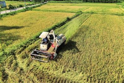近日,咸安区汀泗桥镇俊敏种植专业合作社的农机手操作农机在稻田里抢收早稻。