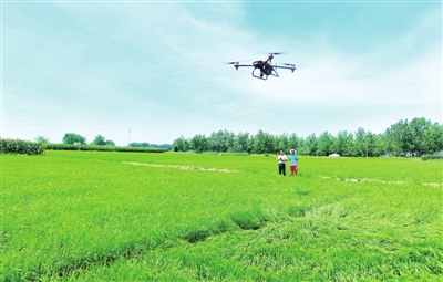 7月12日,嘉鱼县簰洲湾镇新洲村,当地农户正操作无人机给中稻田喷洒生物农药。据了解,该镇今年水稻种植面积近4万亩,基本实现全程机械化作业,目前已有1万余亩水稻实现无人植保机喷洒农药。