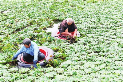 8日,嘉鱼县陆溪镇邱家湾村村民在采摘菱角。6月底至10月初是菱角采摘旺季,眼下正是菱角上市的初期,菱角市场价格高,为菱角种植户们带来可观收入。该镇菱角种植面积达3000多亩。