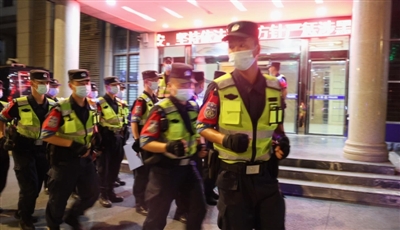 在夜市、酒吧、夜宵摊等人流密集区域,特巡警队员和派出所民警分组联合巡防,突击车显示屏上播放的夏季治安巡查宣防的语音,刺破夜空传荡开去,与升腾的烟火气一起外溢……