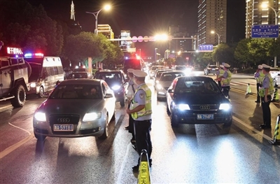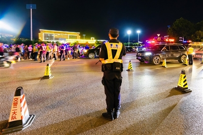 警灯闪烁、警笛呼啸,一辆辆警车结队在全城贯穿而过,串联起仲夏夜的香城“夜警”。