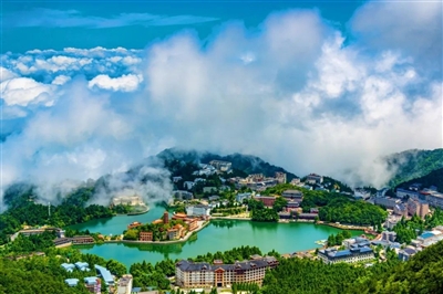 九宫山森林覆盖率达96.6%,是中国负氧离子含量最高的天然大氧吧之一。山上遍地喷泉飞瀑,四季涌流不竭。充足的水汽给人带来清凉的感觉,即使到了炎炎夏日,温度一般也不会超过30℃。