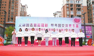 本报讯 通讯员蒋旗、伍伟报道:7月26日上午,2022年咸安区志愿服务展示交流暨新时代文明实践点授牌活动在永安街道文笔路社区畔山林语小区举行。