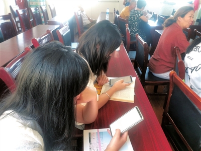 7月22日,在咸安区横沟桥镇袁铺村农村书屋,一些村民翻阅着图书,一些村民则用手机网上阅读。