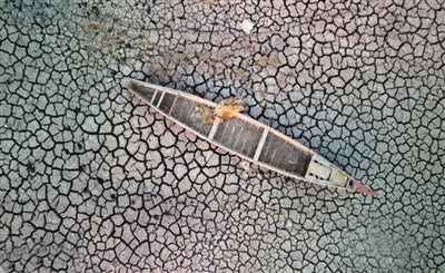 近日,伊拉克济加尔省奇巴伊什县,一艘船停在一段已经干涸的河床上,附近的沼泽地已消退。伊拉克多地干旱的天气导致河水减少,河床大面积裸露。 (本报综合)
