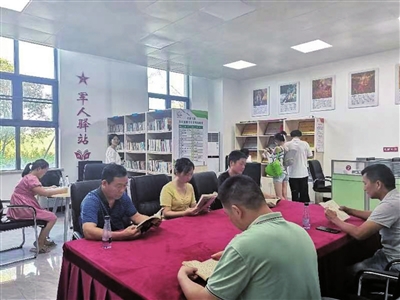 7月21日,笔者走进官埠桥镇渡船村村委会,一股书香文韵扑面而来。只见宽敞明亮的办事大厅内,一边是村民在有序办事,一边是村民孩子学习的乐园。
