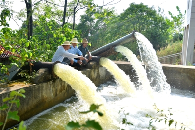 8月23日,赤壁市余家桥乡月星山村东渠口机站,几台机组24小时不间断从皤河提水到东渠,保障沿线农田灌溉。