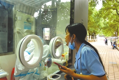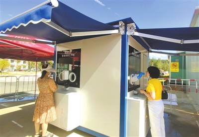 记者在核酸采样便民服务点看到,这里共开放了2个采样窗口,现场工作人员正引导市民有序排队、扫码、采样……虽说待采人数不少,但现场疏导有序,市民从“进场”到“离场”都十分流畅。