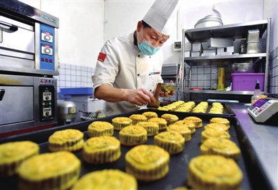 9月9日,咸安区桂花镇柏墩街“东海蛋糕店”,店主雷武东正在赶制中秋月饼。