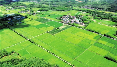 初秋时节,阡陌田垄,树成行、田成方、渠相连,乡间公路交织在一起,在阳光的映射下色彩斑斓,构成一幅美丽的画卷。