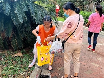 龙翔山社区里,小天使们在社区青年和家长的带领下,一边俯首弯腰捡拾垃圾为日常生活的环境“减负”,一边重新认识社区风貌、了解社区人文历史。