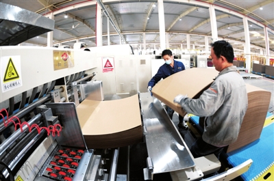 该公司位于崇阳县经济开发区,是一家以瓦楞纸板生产和包装为主的民营企业。该公司总投资7.8亿元,分两期建设,目前一期已建成投产,生产的各种系列纸板产品俏销市场,年实现产值1.26亿元。