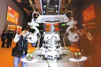 “普通医生的操作精度一般约1毫米,机器人能达到0.1毫米。做一台传统癫痫手术需3名医生操作10个小时,而在机械臂辅助下,手术精确性可提升40%、时间缩短50%……”在美敦力展台,三大手术辅助机器人解决方案集体亮相,美敦力全球高级副总裁及大中华区总裁顾宇韶表示,手术机器人正进入加速普及应用的快车道,为国内患者带来创新的医疗解决方案。