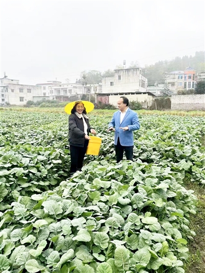 11月14日,通城县公检中心党员徐俊指导驻点的塘湖镇狮子村4组村民熊荣,抢抓阴雨天气给油菜施肥。