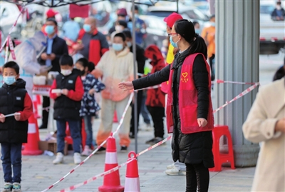 居住在附近的王灿报名成为志愿者后,坚持每天按时到岗参与志愿服务。他连续几天都在社区核酸采样点做志愿服务工作。“在家没什么事情,趁自己有点空闲时间就尽量多出一份力,希望疫情能尽快控制住。”