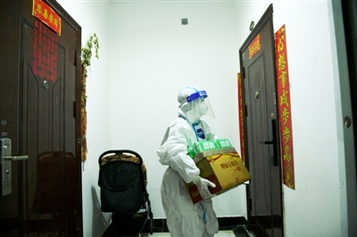 为保障疫情防控期间社区居民基本生活供给,该社区建立起以居民楼栋为单元的微信群,志愿者为居家隔离的居民进行无接触式物资购买配送,让隔离不隔爱、让居家更安心。