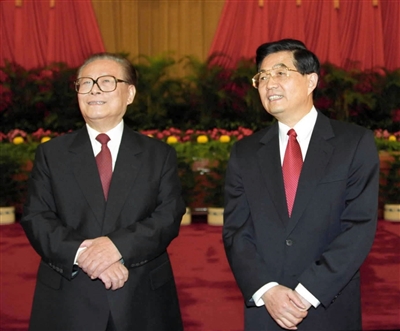 | 左图:2002年11月15日,江泽民同志、胡锦涛同志在北京人民大会堂亲切会见出席党的十六大代表、特邀代表和列席人员并发表重要讲话。 |