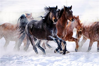 马群卷起雪雾飞扬