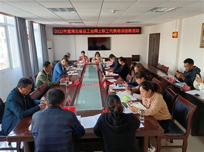 线上线下融合宣讲 把宣传党的二十大精神融入工会工作全过程,坚持网上网下,内宣外宣一体推进。以新就业形态劳动者建会入会、女职工主题阅读优秀作品展播等工会各项活动为载体,宣传党的二十大精神。推动职工服务中心、户外爱心驿站、司机之家等实体阵地成为党的二十大精神宣传宣讲阵地。主动联络主流媒体,及时发出工会声音,讲好职工故事。11月17日,市总工会运用“腾讯课堂”开展网络线上培训方式,举办全市基层工会干部培训班,市总工会干部职工在主会场参加培训,各县(市、区)总工会、咸宁高新区总工会,市直各产业(委、局)及有关基层工会在本单位视频会议室按时听课。
