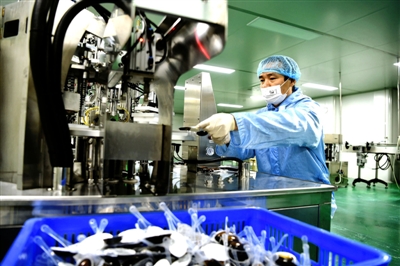 12月21日,在通城县药姑山健康科技产业园内,湖北润康药业、湖北九楚等公司,正在加紧生产。